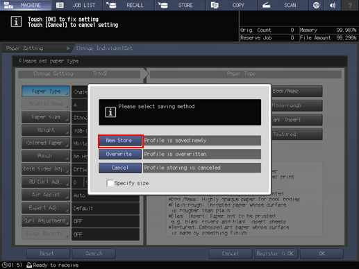 supplementary explanationSelecting Overwrite overwrites the registered paper conditions.