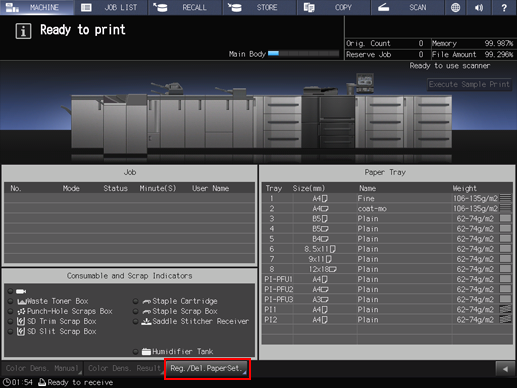 supplementary explanationThe paper profile registered can be edited or deleted on the Reg./Del. Paper Set. screen.