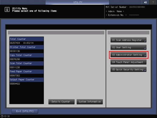 Press Administrator Setting.