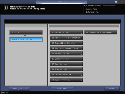 Press System Setting.