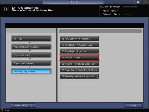 The UTILITY screen is displayed.
