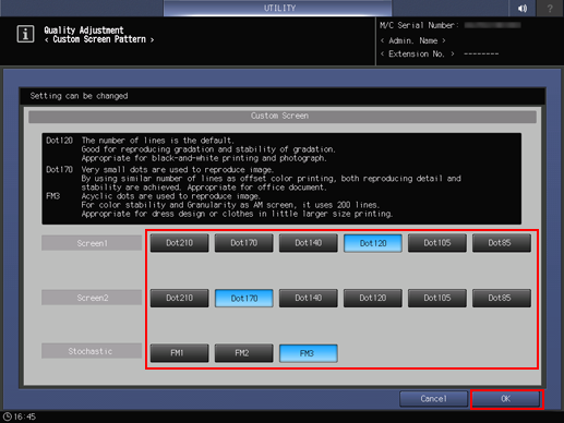 Press the screen to be assigned to each screen type: Screen 1, Screen 2, and Stochastic. After setting, press OK.