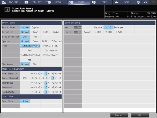 supplementary explanationBe sure to input a job name. The job name must be inputted to return to the Store Mode Memory screen by pressing OK.