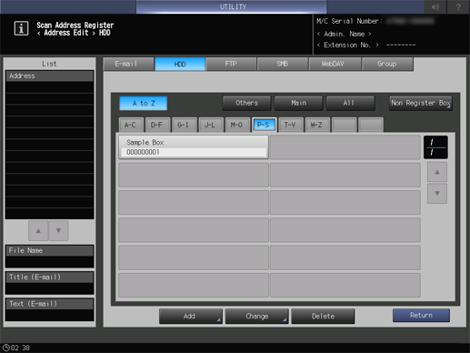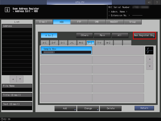 Also, if unregistered boxes are registered as the destination, it is deleted from the list of Non Register Box screen.