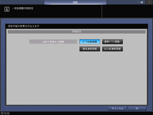 出力紙濃度調整を調整項目に追加します。 インテリジェントクオリティオプティマイザー IQ-601または中継搬送ユニット RU-518m非装着の場合は、表示されません。 |