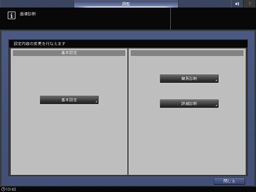 タッチパネル - [機械状態] - [調整] - [画質調整] - [画像診断]