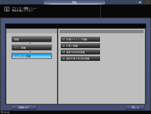 タッチパネル - [機械状態] - [調整] - [マシン調整] - [プリンター調整]
