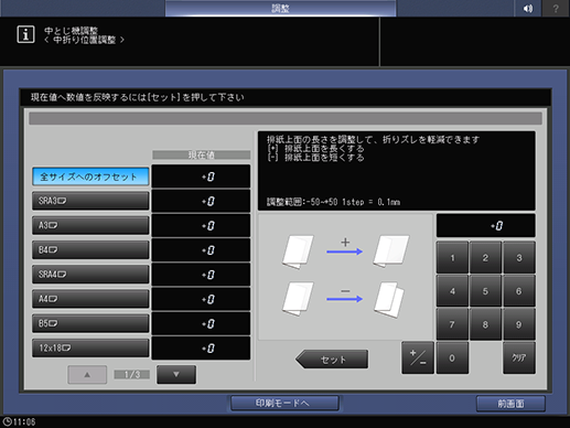 [+/-]で数値のプラスまたはマイナスを選択し、[セット]を押すと[現在値]を変更できます。
