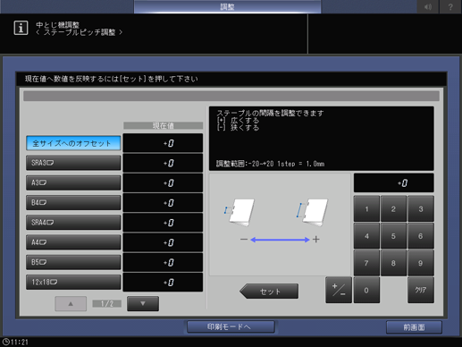 中綴じ機 SD-506でステープルするときの間隔を調整します。