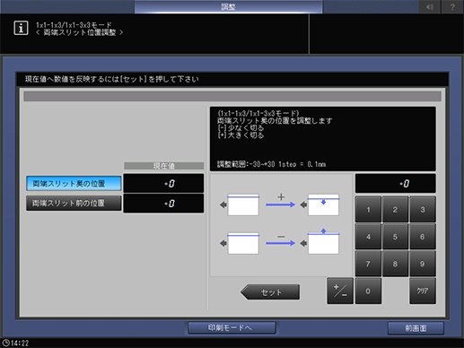 [+/-]で数値のプラスまたはマイナスを選択し、[セット]を押すと[現在値]を変更できます。