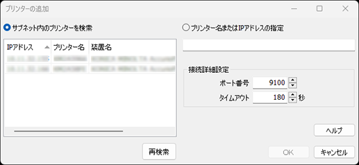 同じネットワーク上に存在するプリンターを自動で検索します。