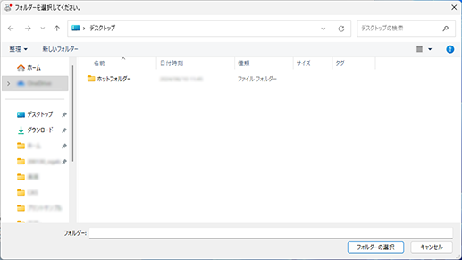 フォルダーの選択画面が表示されます。