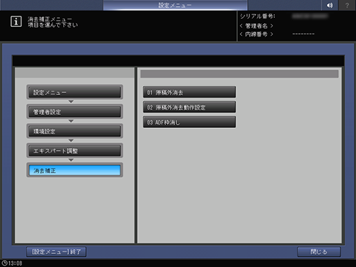 操作パネル - 設定メニュー/カウンター - [管理者設定] - [環境設定] - [エキスパート調整] - [消去補正]