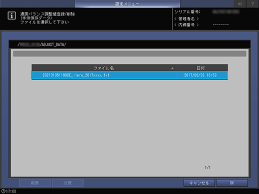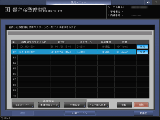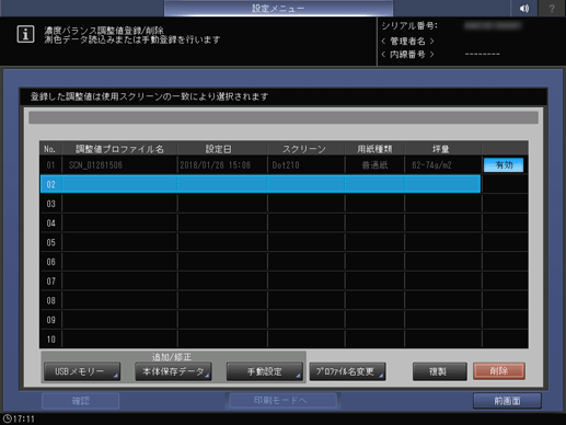 [濃度バランス調整値登録/削除]画面に戻ります。