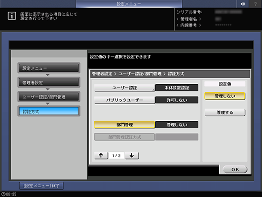 本機を使用するユーザーを、部門ごとに管理する設定をします。