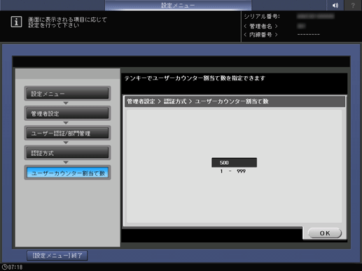 本機に登録できるユーザー数を設定します。