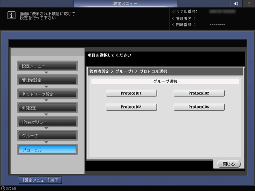 [プロトコル指定]で登録した[グループ名]が表示されます(画面は一例です)。