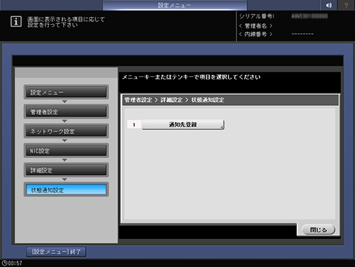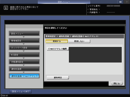 紙づまりなど本機でエラーが発生したときに設定したアドレスに通知するような設定をします。