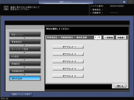 通知先のIPアドレスを設定します。