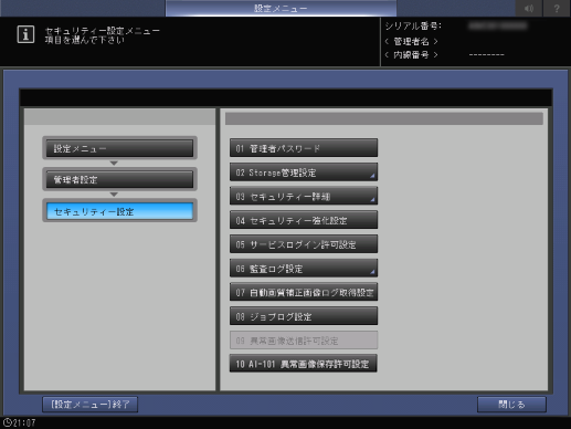 操作パネル - 設定メニュー/カウンター - [管理者設定] - [セキュリティー設定]