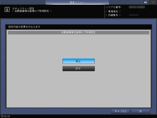 管理者設定 > [セキュリティー設定] > [自動画質補正画像ログ取得設定]