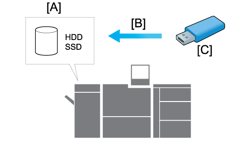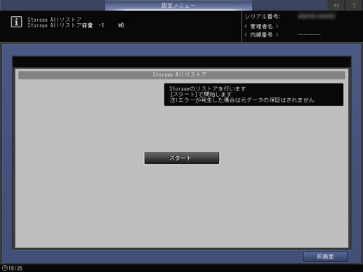 [Storage Allバックアップ]で紙面検査ユニット AI-101のHDDおよびSSD内のデータを外付け記憶媒体にバックアップし、そのデータを紙面検査ユニット AI-101のHDDおよびSSDにリストアします。