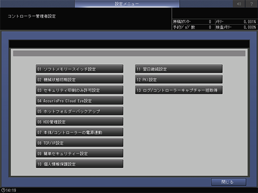 [機械状態]画面の[コントローラー設定]とは異なり、管理者が行う設定です。
