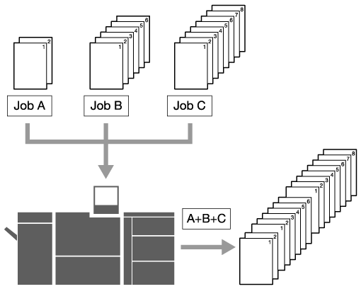 複数のコピージョブを結合し、1つのジョブとして印刷します。