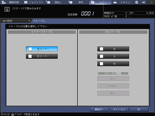 タッチパネル - [コピー] - [出力設定] - [ステープル]