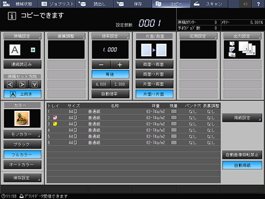 各給紙トレイの用紙設定も表示されます。