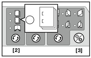 - 重送していなくても、重送していると検知して機械が停止する場合は、重送検知機能選択キー[1]を押して、重送検知機能OFFのランプを点灯させます。