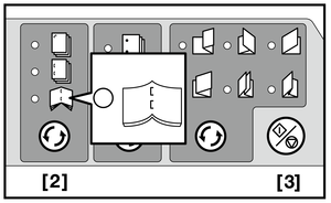 ポストインサーター操作パネルのステープルモード選択キー[2]を押して、中とじモードのランプを点灯させます。
