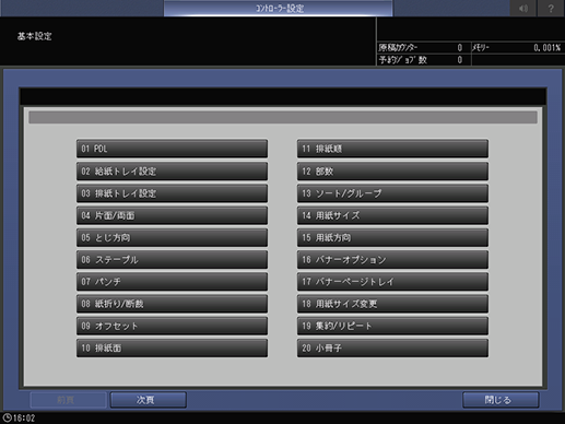 タッチパネル - [機械状態] - [コントローラー設定] - [ダイレクトプリント設定] - [基本設定]