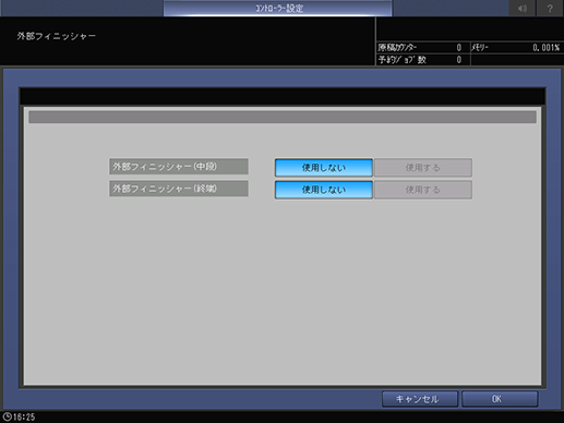 ダイレクトプリント時に外部フィニッシャーを使用する設定をします。