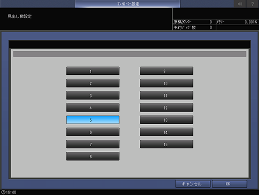 インデックス紙の見出し数を選択します。