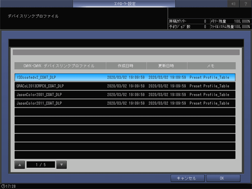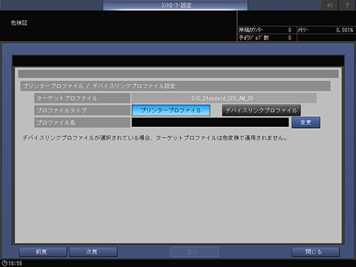 [デバイスリンクプロファイル]:色検証チャートの印刷に使用するプロファイルに[デバイスリンクプロファイル]を選択します。[デバイスリンクプロファイル]を選択した場合は、色変換でターゲットプロファイルは適用されません。