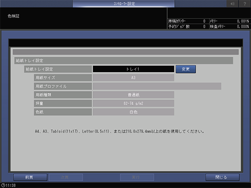 [測色モード]の設定によって、使用できる用紙サイズが異なります。
