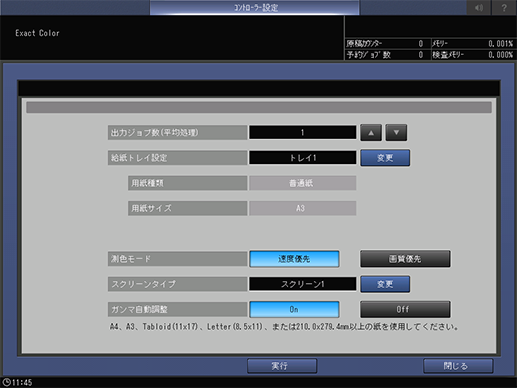[測色モード]の設定によって、使用できる用紙サイズが異なります。