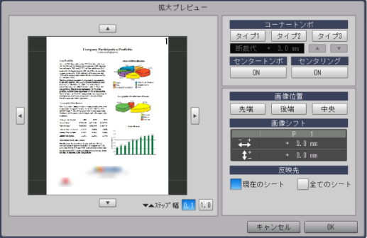 [画像シフト] | 現在のプレビューページ番号と画像シフト量の数値が表示されます。 | ||