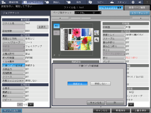 不要になったインデックス紙を排紙トレイに自動で排出する設定をします。