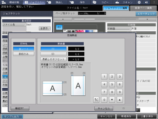 [反映先] | [全シート] | すべてのシートを両端断裁します。 |