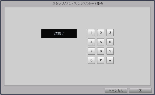 [スタート番号] | [スタート番号設定] | ナンバリング(通し番号)の開始番号を設定します。番号は4桁まで入力できます。 設定範囲:0 ~ 9999 |