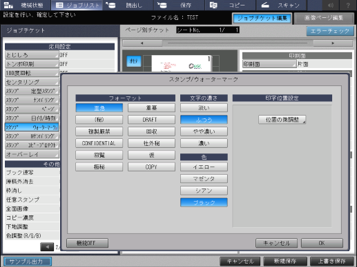 文字のフォーマットや文字の濃さ、印字位置を設定できます。