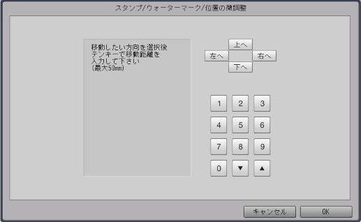 [印字位置設定] | [位置の微調整] | 数値を入力してスタンプの印字位置を調整します。 |