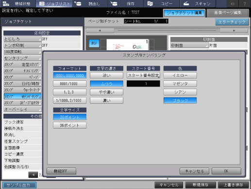 文字のフォーマットや文字サイズ、スタート番号などを設定できます。