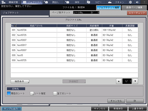 登録済みの用紙プロファイルから、条件にあった用紙プロファイルを検索します。 | |