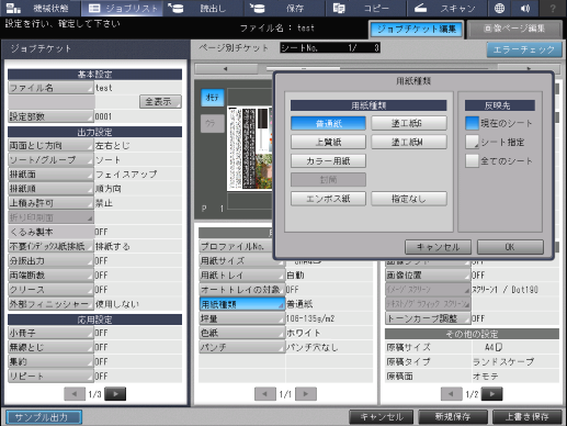 [用紙種類] | [普通紙] | 複写機やプリンターで用いられる「PPC用紙」といわれるコピーや印刷用紙です。 モノクロコピーおよび印刷をするときに選択します。 |