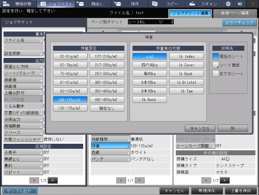 坪量を正しく設定しないと、紙づまりや重送などが発生することがあります。