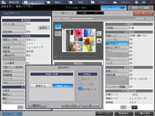 用紙を重ね中折りする設定をします。