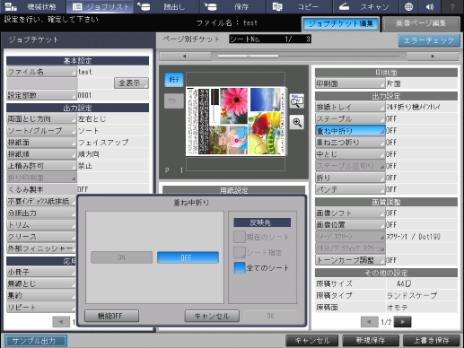 [OFF] | 用紙を重ね中折りしません。 | |